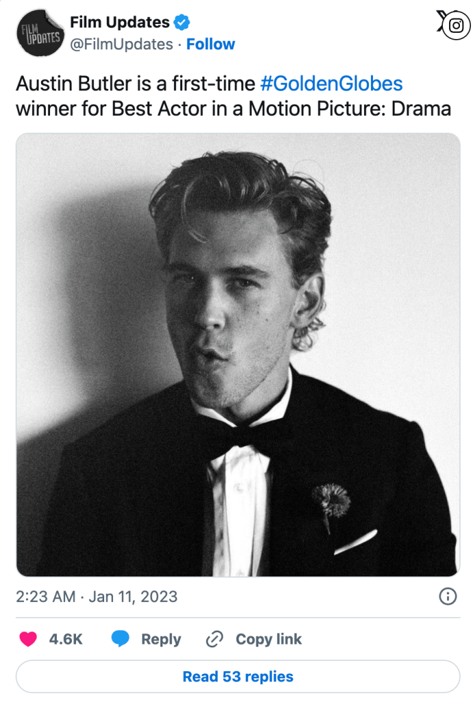 Born in Disney, but made in Hollywood – our resident blonde heartthrob had a career defining moment when his name was called for Best Actor in a Drama Film for his celebrated performance as Elvis in Baz Luhrmann’s biopic. Gracefully accepted and greatly deserved, this award establishes Butler as an actor who not only honours those who should be remembered but that he himself is not to be forgotten.